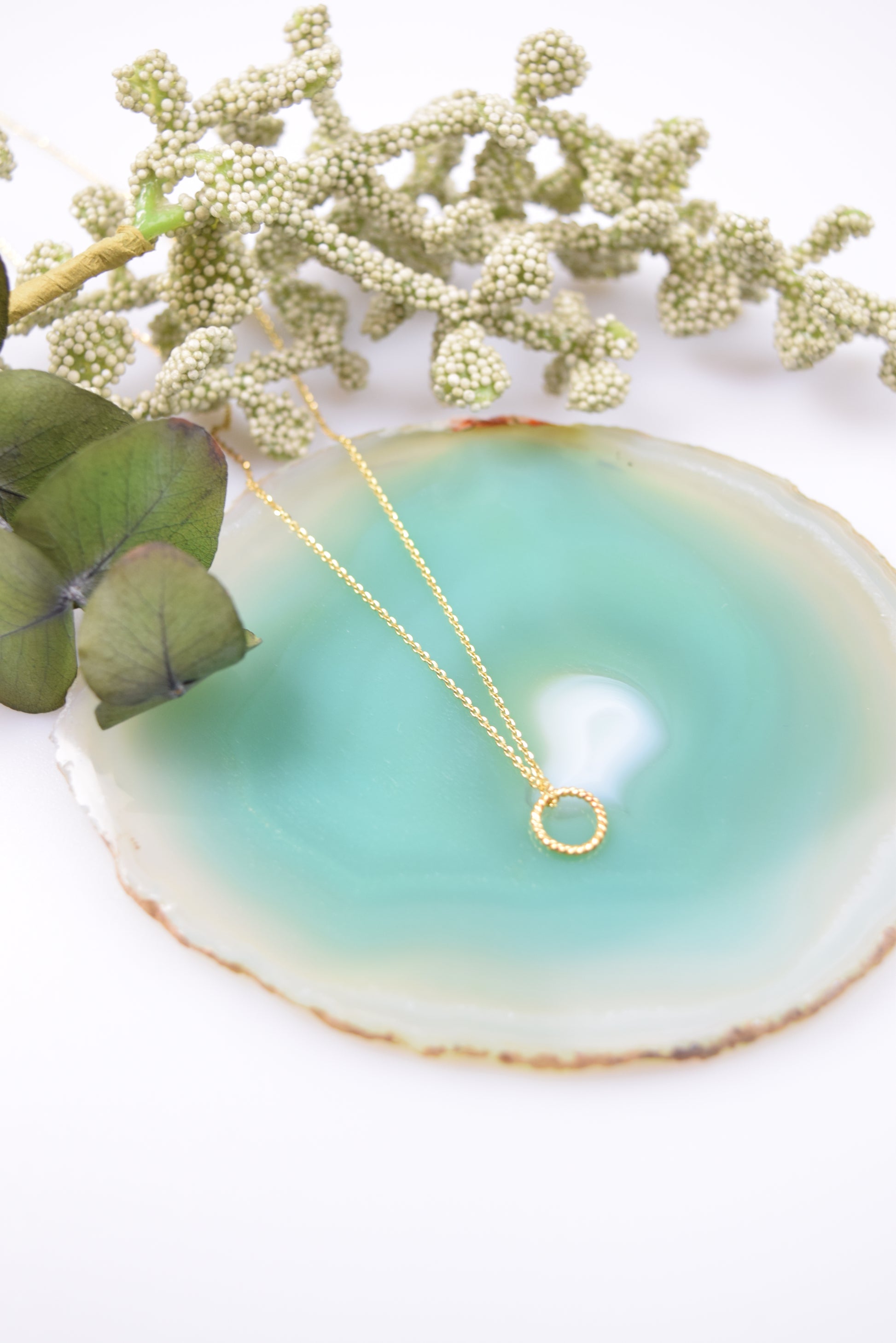 Kette 925 Silber vergoldet, kleiner gezwirbelter Kreis Anhänger, offener Ring, Unendlichkeit, Vollkommenheit, Kreis Anhänger