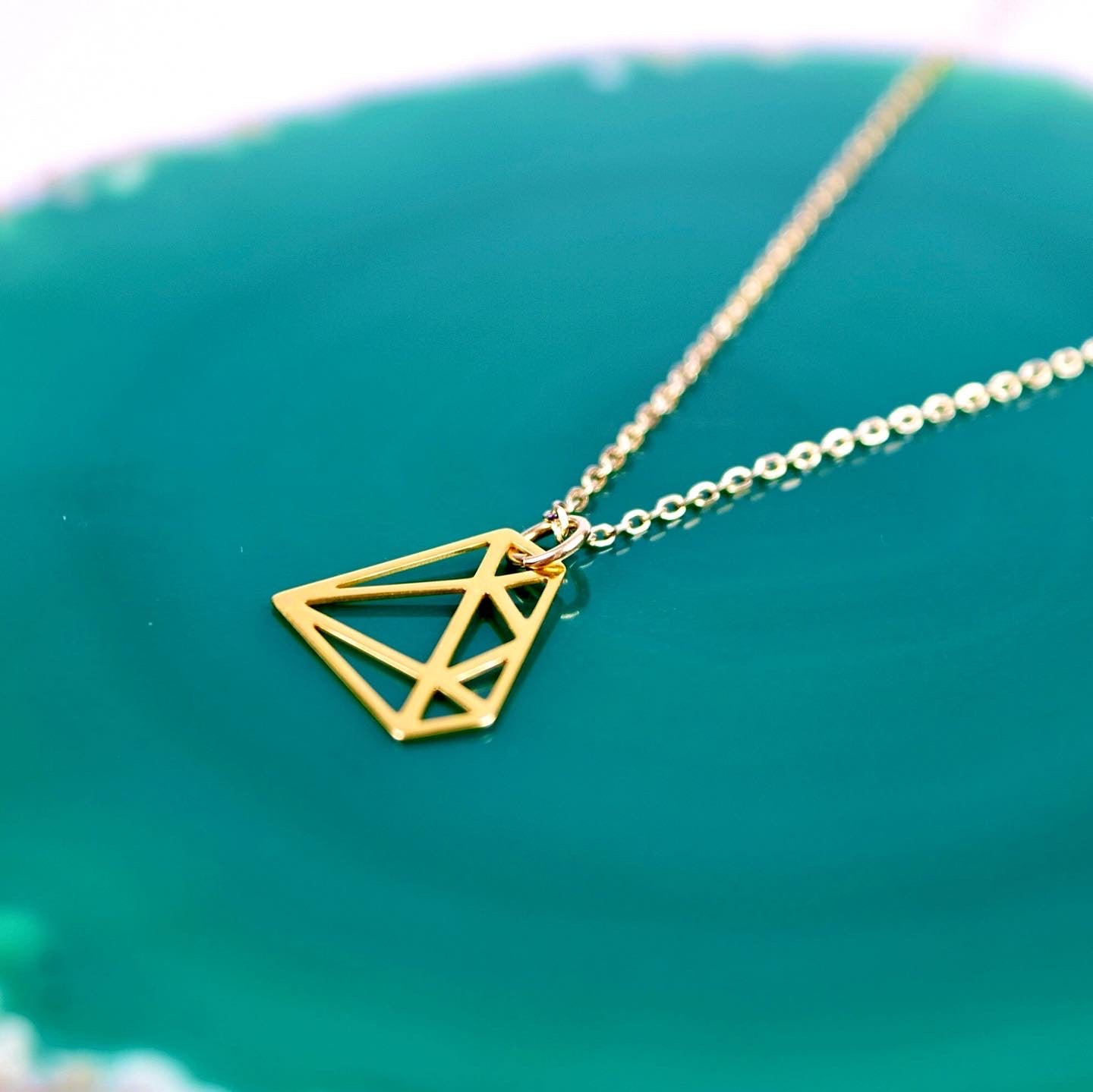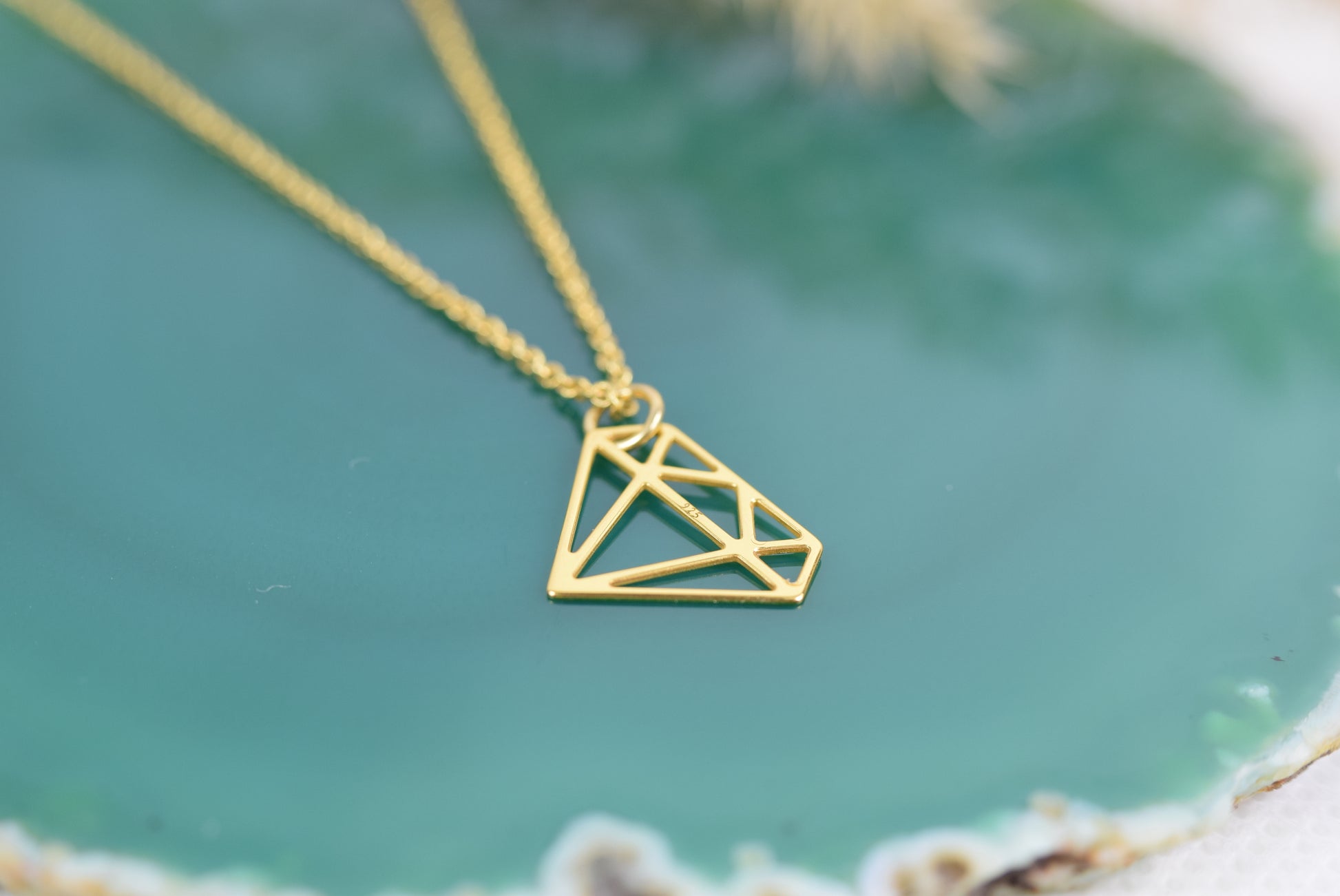 Kette echt Silber 925 vergoldet Diamantform, stilisierter Diamant, grafischer Diamant