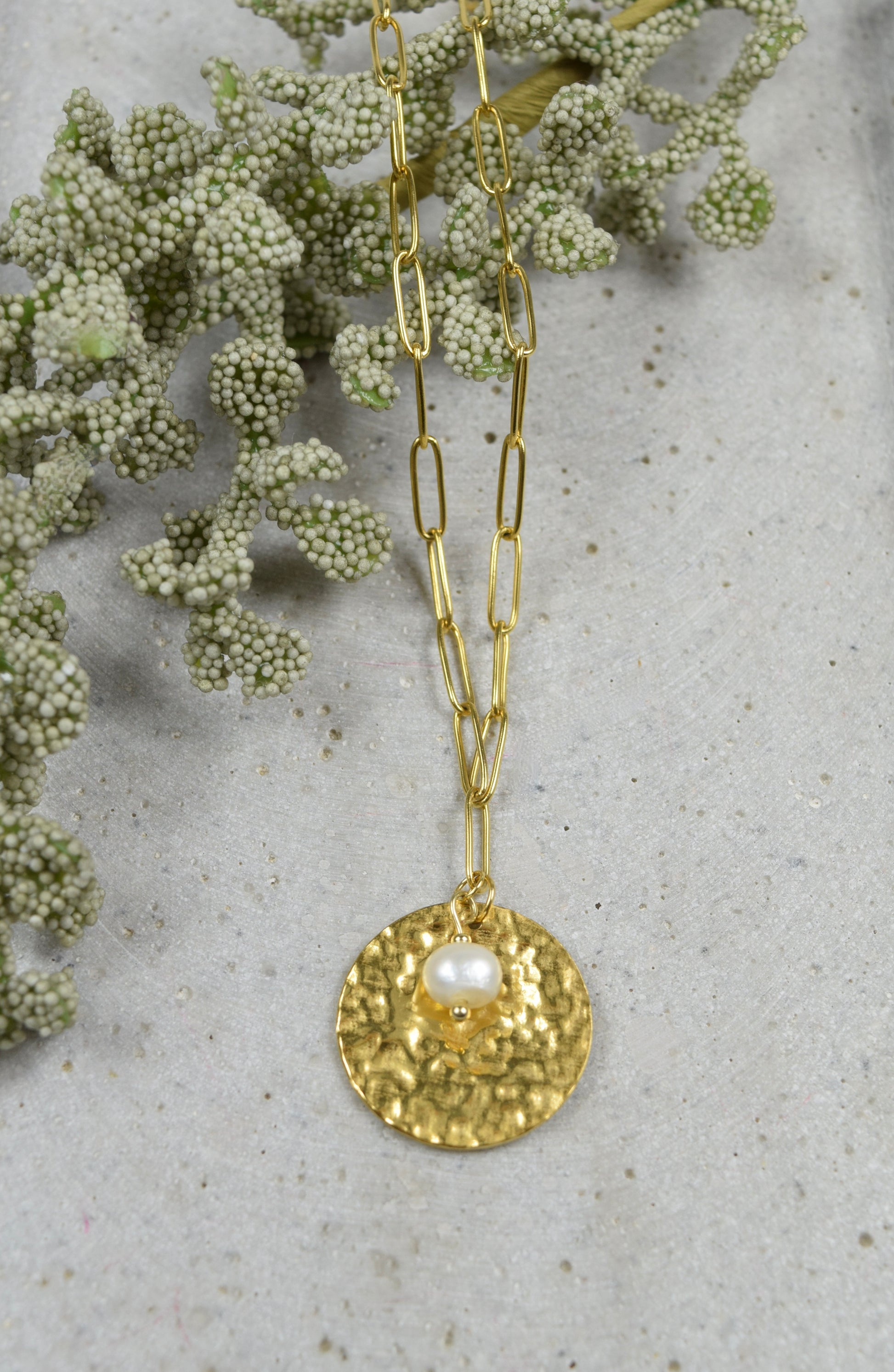 Kette mit Medaillion und Süßwasserperle Edelstahl vergoldet