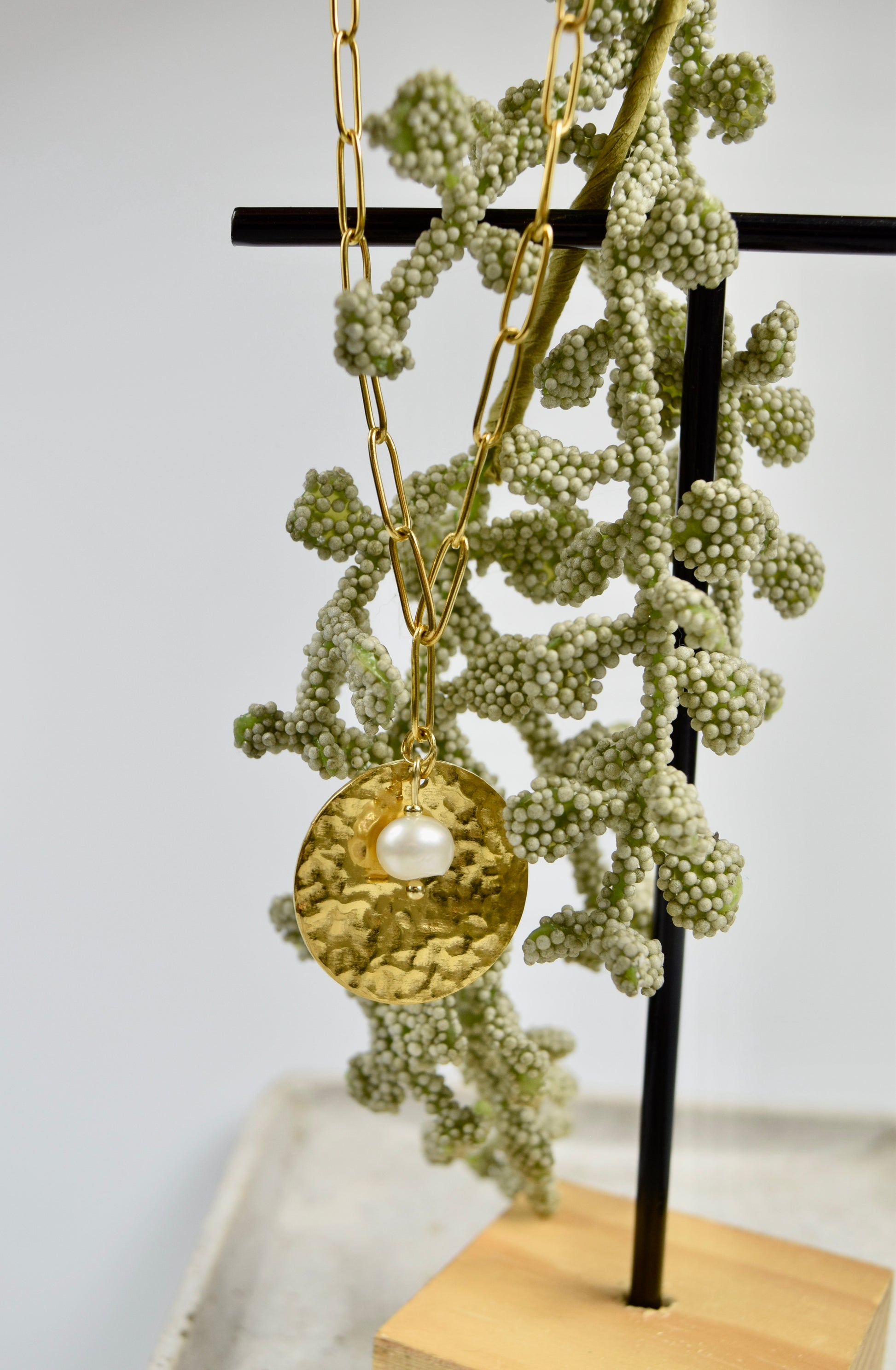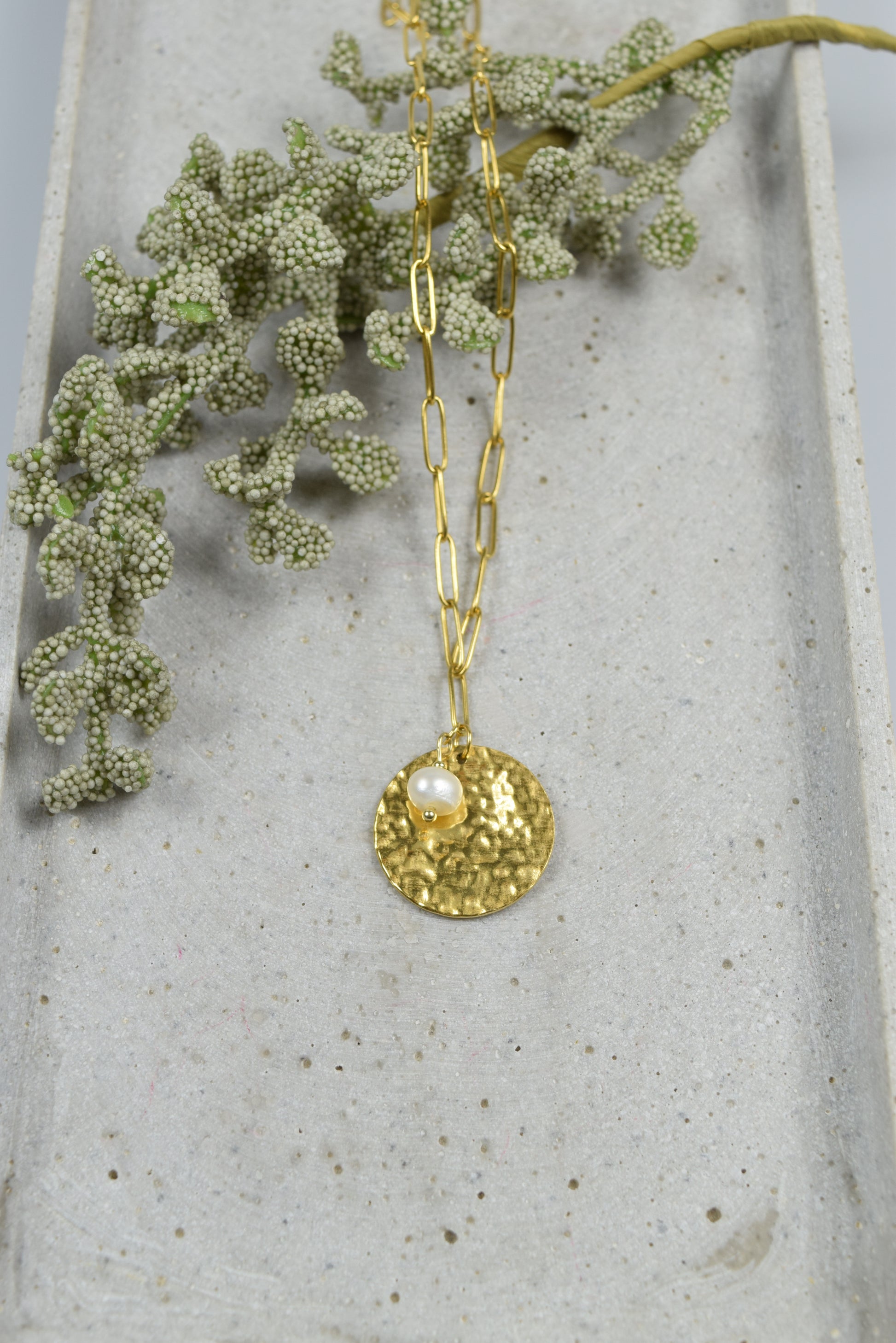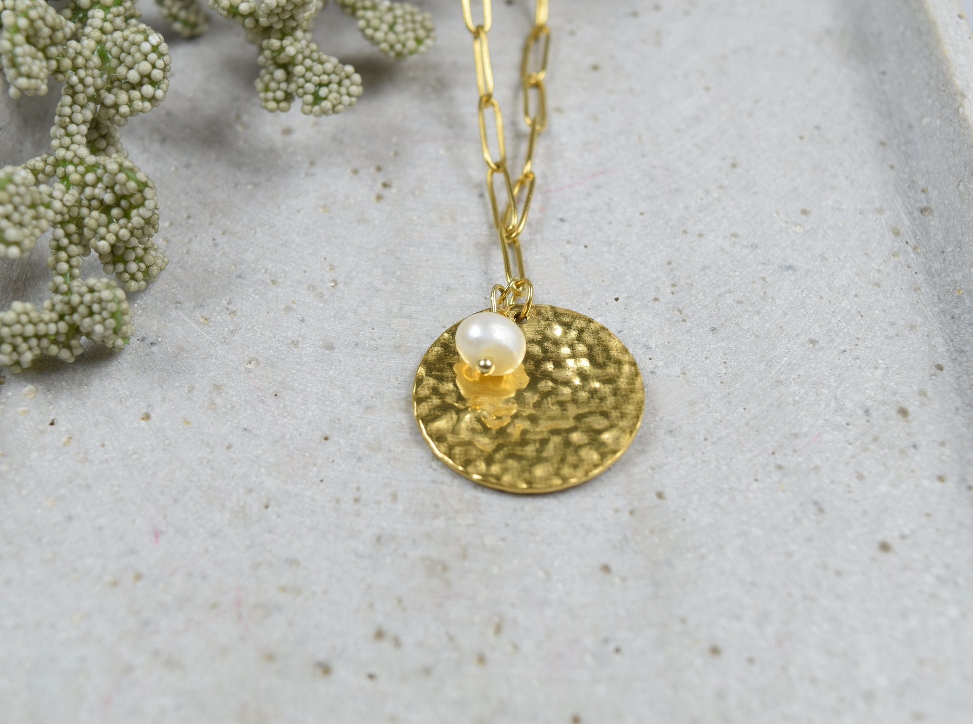 Großes 25mm Medaillion, gehämmert. On Top eine Süßwasserperle.