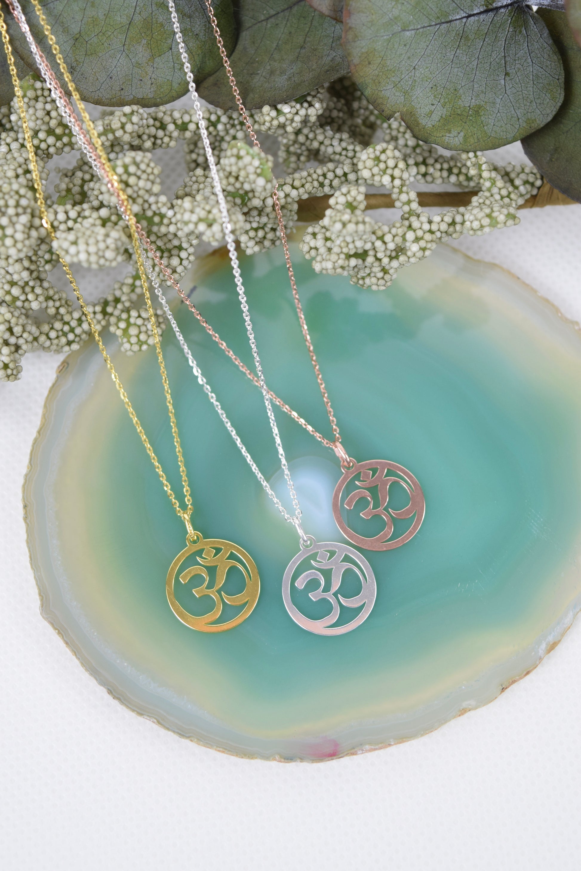 Feine 925 Silberkette mit zartem Medaillon "OM" als Anhänger. Der Anhänger ist ebenfalls aus 925 Silber. Das OM ist eine Silbe, die bei Hindus, Jainas und Buddhisten als heilig gilt. Der Laut ist eng verbunden mit dem durchdringenden tiefen Klang des shankha-Schneckenhorns. Vielen Mantren, die aus mehreren Wörtern bestehen, wird die Silbe Om vorangestellt, beispielsweise dem buddhistischen Mantra Om mani padme hum. (QuelleWIKIPEDIA) In jeder Meditation und auch beim Yoga kommt das OM in deinen Alltag. Dieser schöne Anhänger erinnert dich, fängt dich ein und erdet dich. Feine Ankerkette (0,8mm), Anhänger ∅15mm. Benötigst du eine andere Kettenlänge? Erhältlich sind 40cm, 42cm, 45cm, 50cm und 60cm. Wähle oben deine Wunschlänge aus. Auch in Gold und Roségold erhältlich.