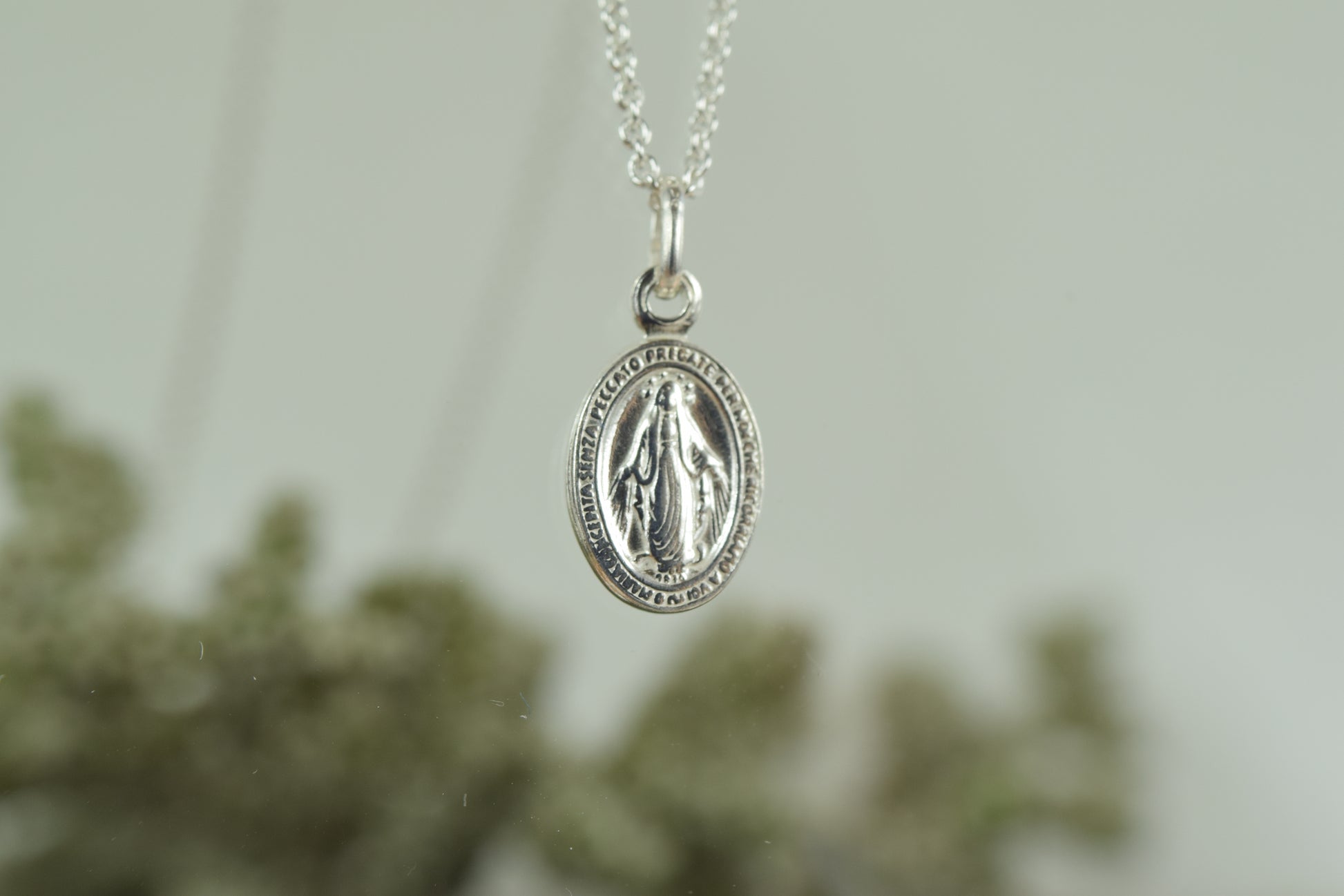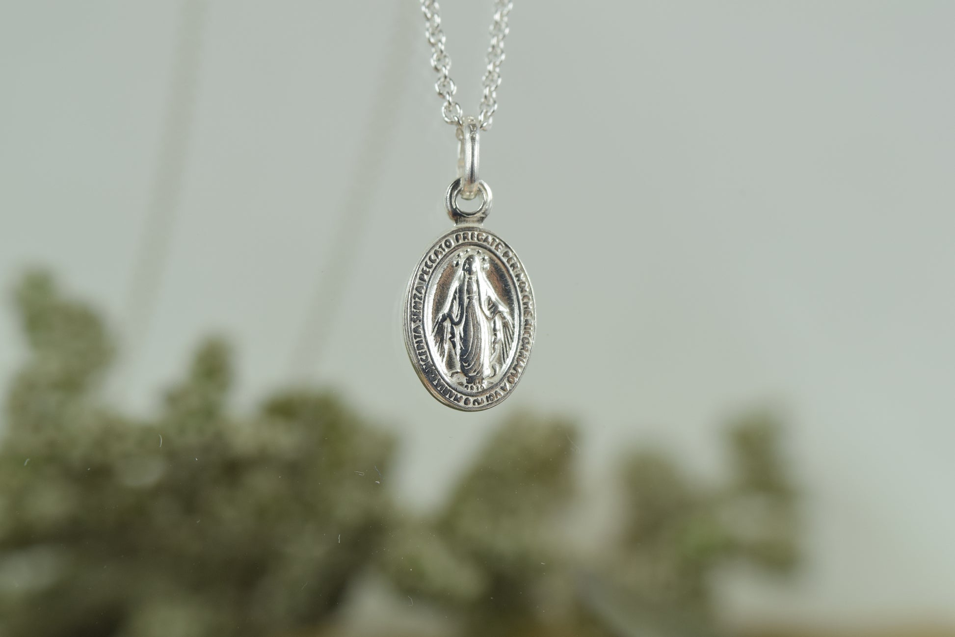 Kette Silber 925 Wundertätige Medaille, heilige Maria, Mantra, Medaillon, Talisman, Schutzpatron