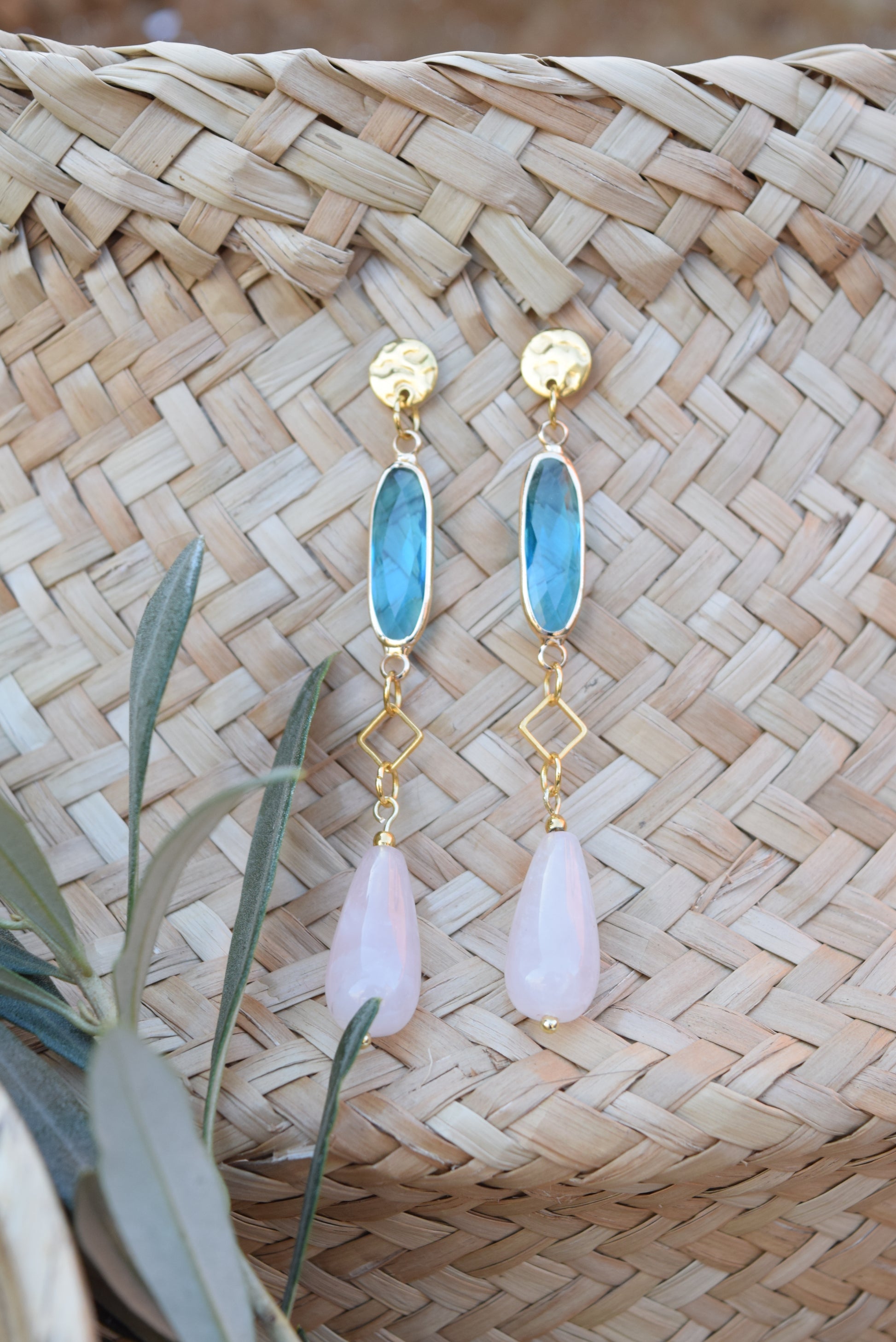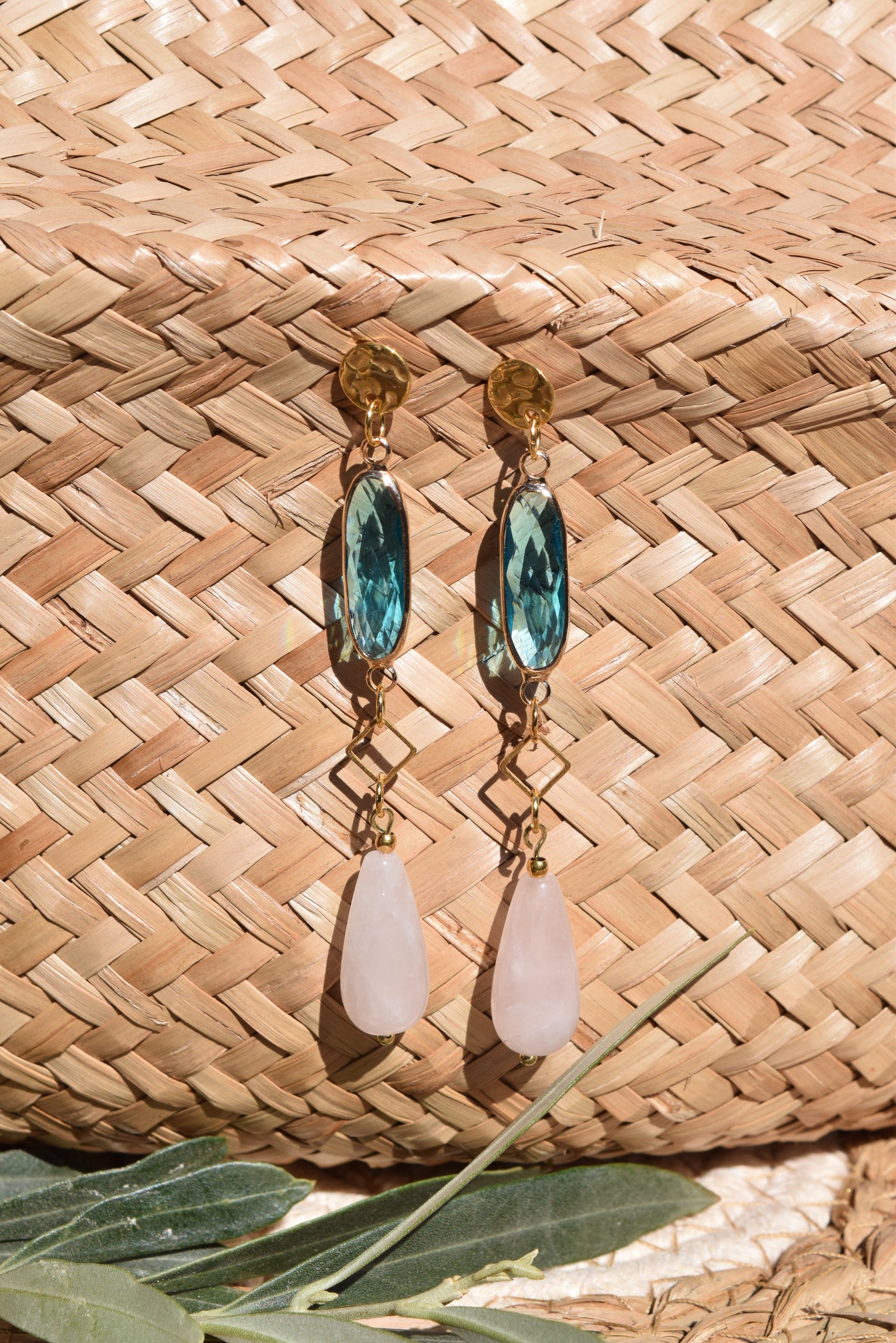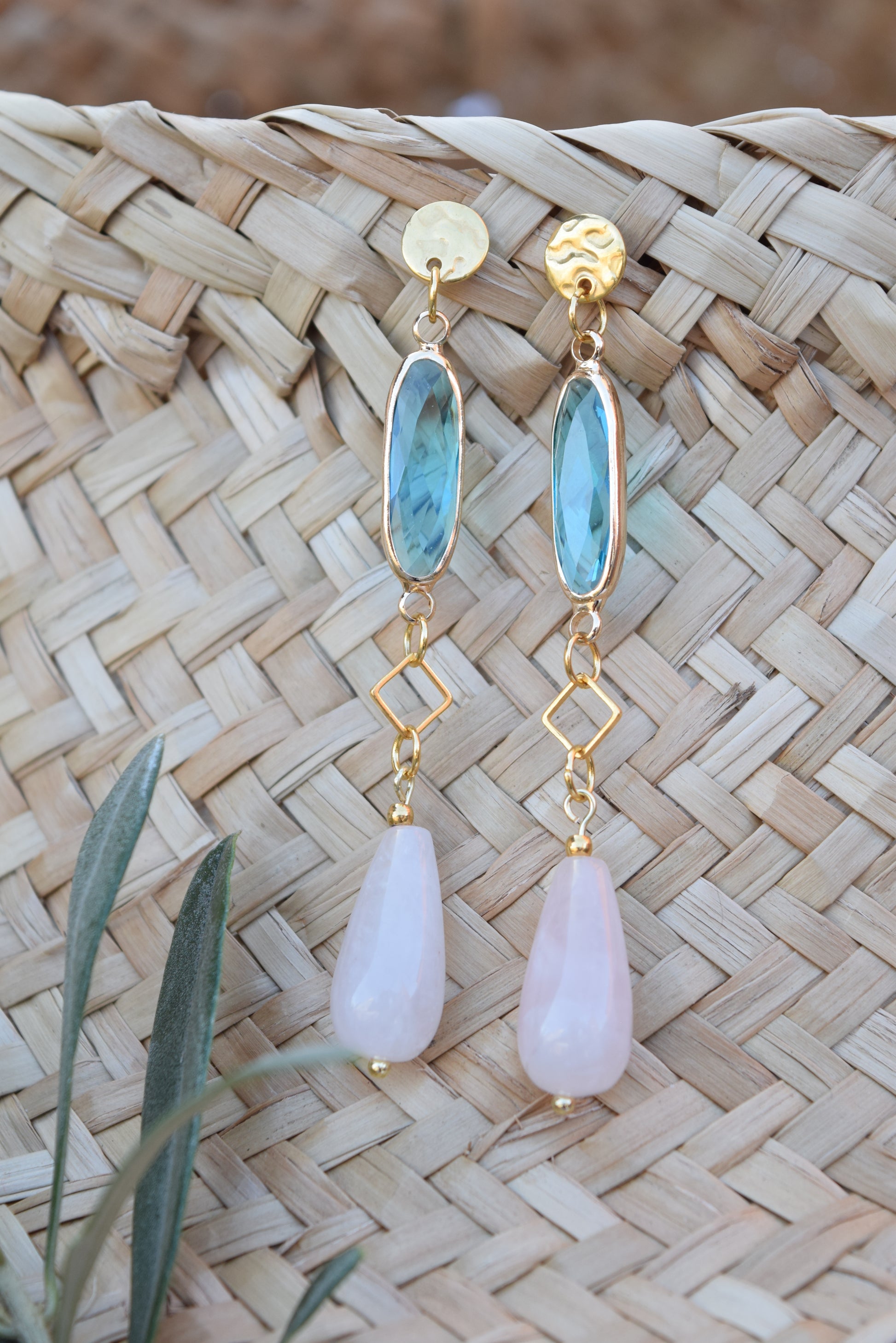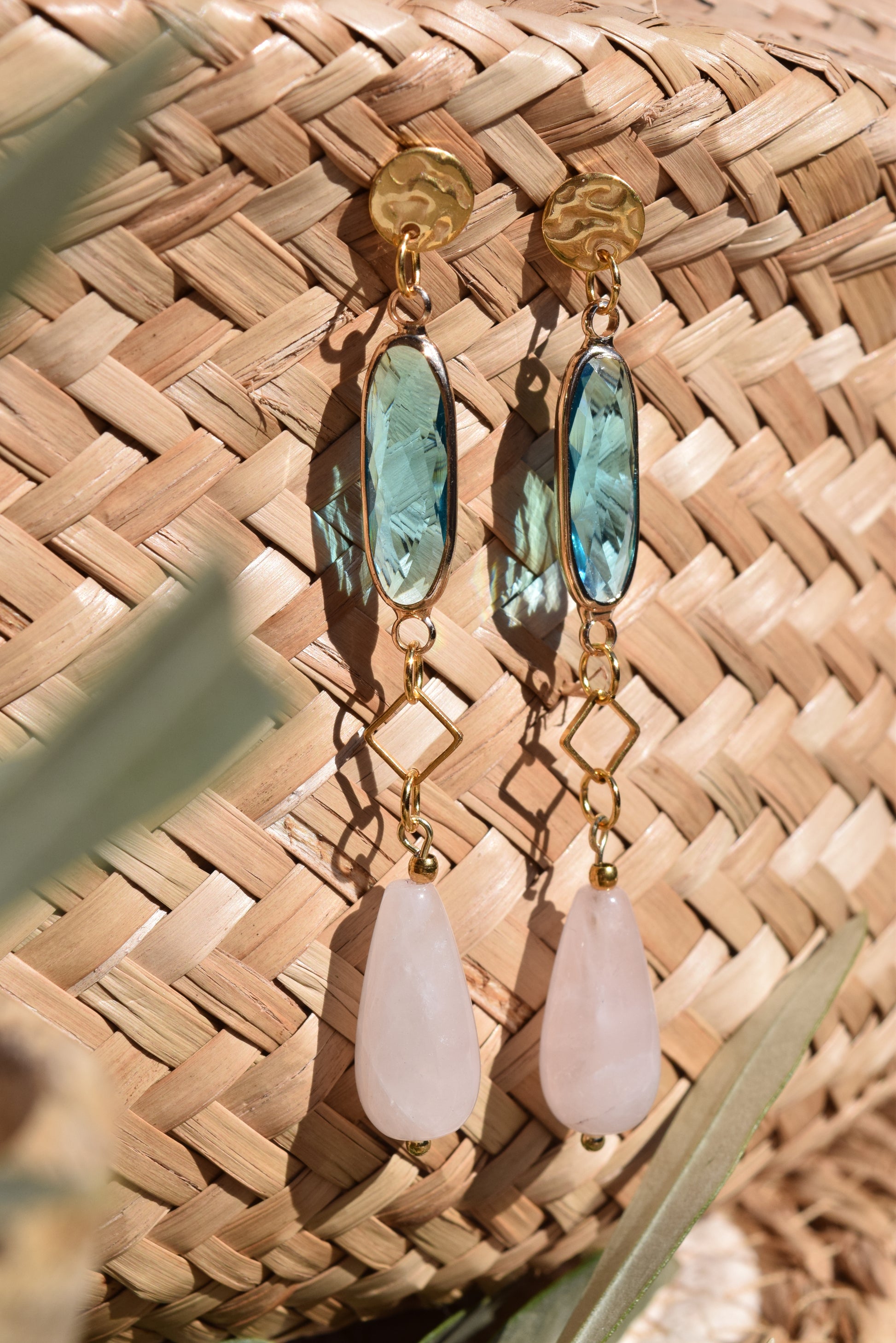 Ohrhänger Mar Azul -Edelstahl 24 Karat und Edelstein
